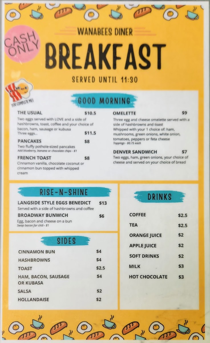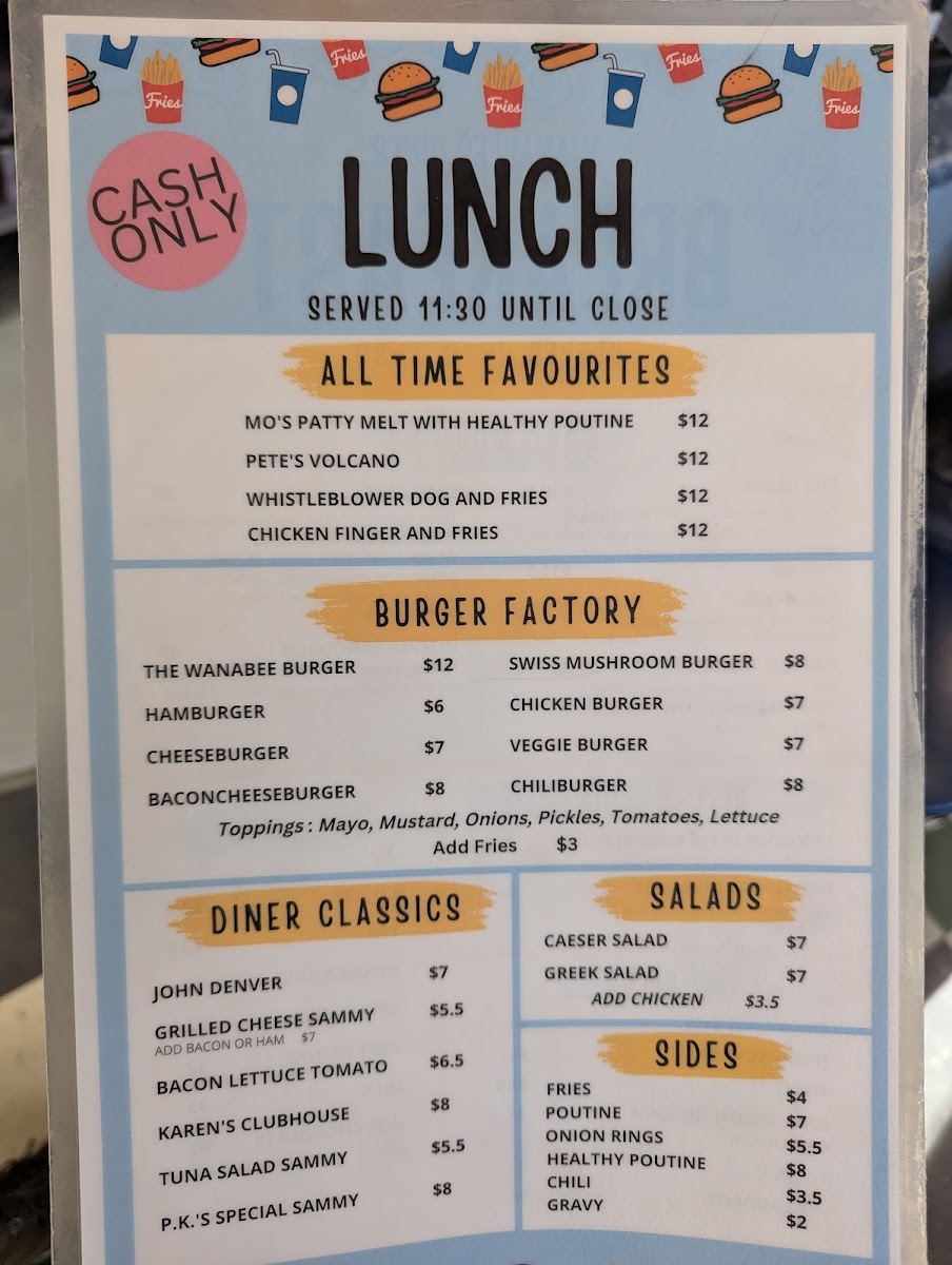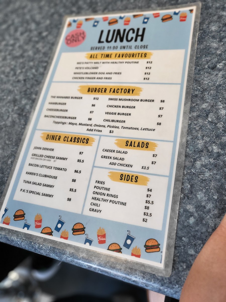 Wanabees Diner Menu